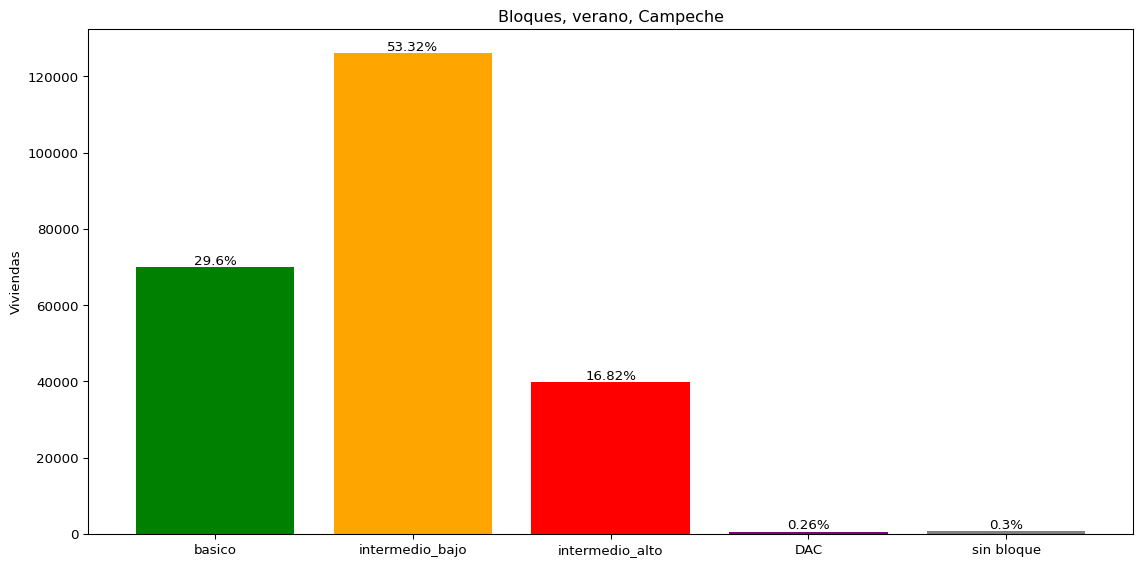 Como se observó en la sección anterior, el 98.05% de las viviendas encuestadas declararon un pago de electricidad efectuado en temporada de verano. El siguiente paso consiste en determinar cuántas de estas viviendas pertenecen a cada uno de los bloques tarifarios, en particular al bloque básico, ya que es este grupo el que recibió el subsidio estatal.